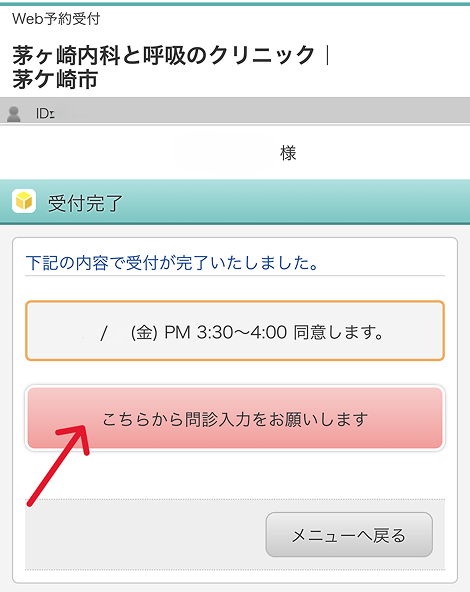 ・受診前にWeb問診にて病状をお伺い致します。 Webご予約後にWeb問診画面に遷移できますので、なるべく受診前にWeb問診に症状、状況などをご入力ください(当院来院後にお書き頂くこともできますが、その際は記載が終了してから検査の流れとなるのでお待ち時間が長くなります)