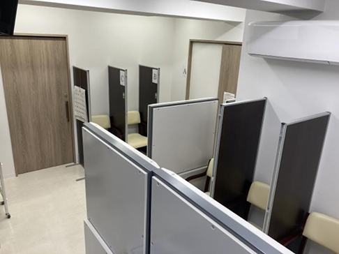 椅子はパーテーションによって個別に区分けされており、最大6人までお待ちいただけます。 クリーンパーティションを4台設置し、より感染防止効果を高めています。