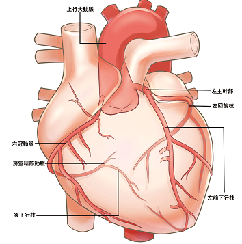 狭心症、心筋梗塞は虚血性心疾患と呼ばれ、心筋に酸素や栄養を届ける冠動脈という血管が狭くなったり詰まったりして、酸素や栄養が十分心筋に行き届かなくなる病気です。