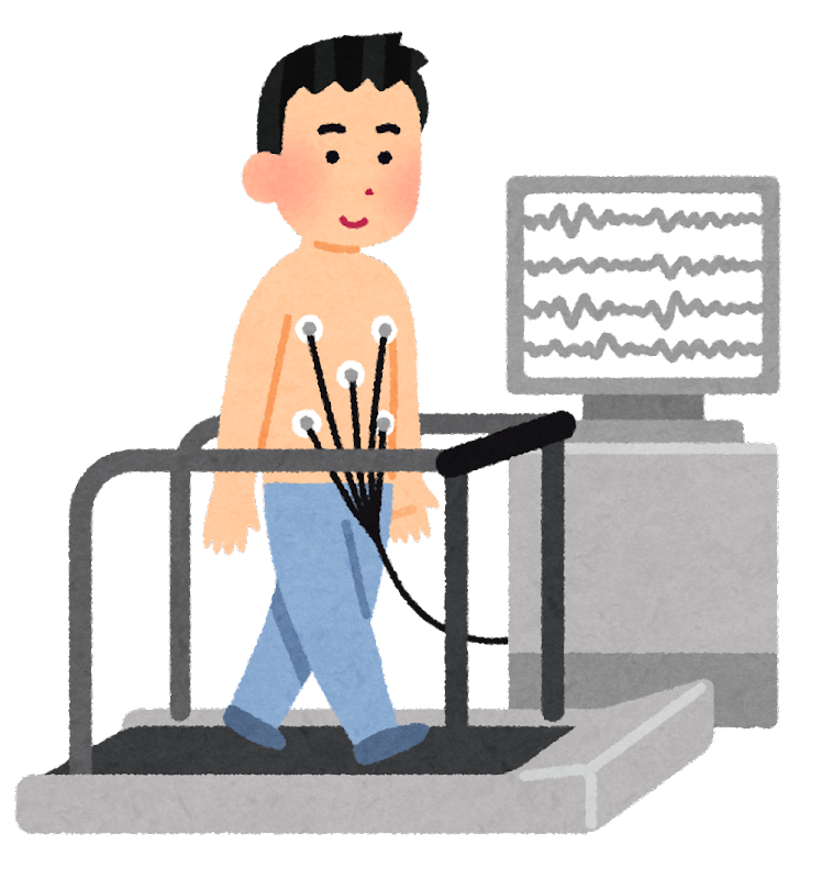 運動すると症状が出現する場合には、運動負荷検査を行い、自覚症状を確認しながら、心電図に変化をきたさないか、血圧や脈拍の異常な変化がないかをみます。