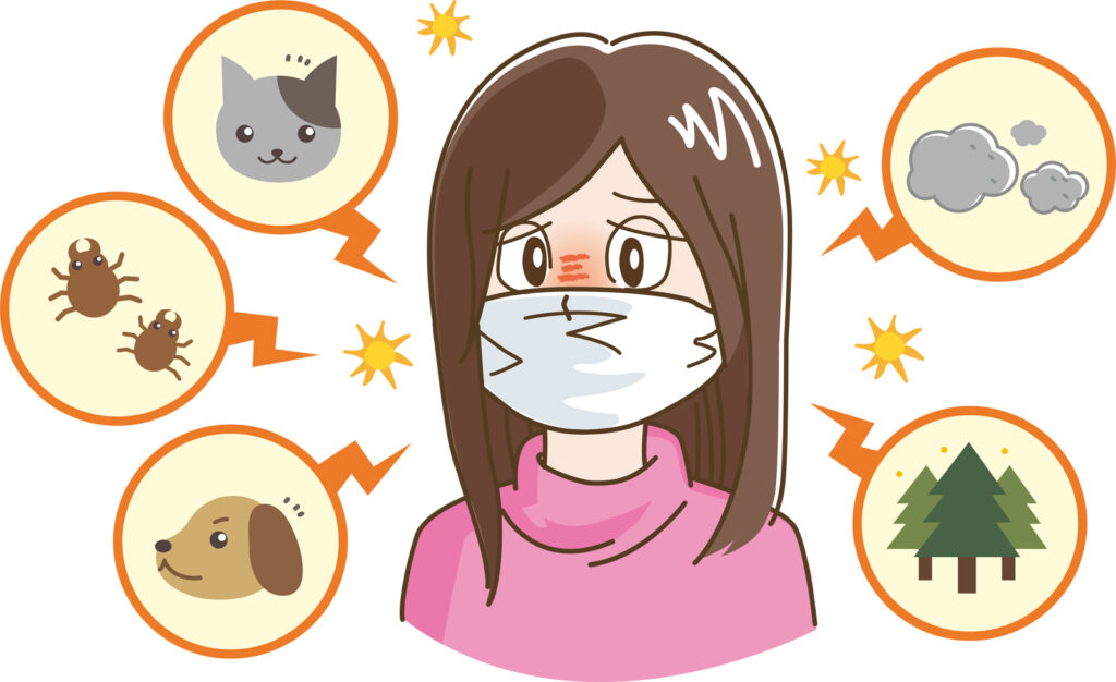 通常「アレルゲン」というアレルギーを引き起こす物質が体内に入り、粘膜に付着すると、これを排除しようとする免疫反応が起こります。