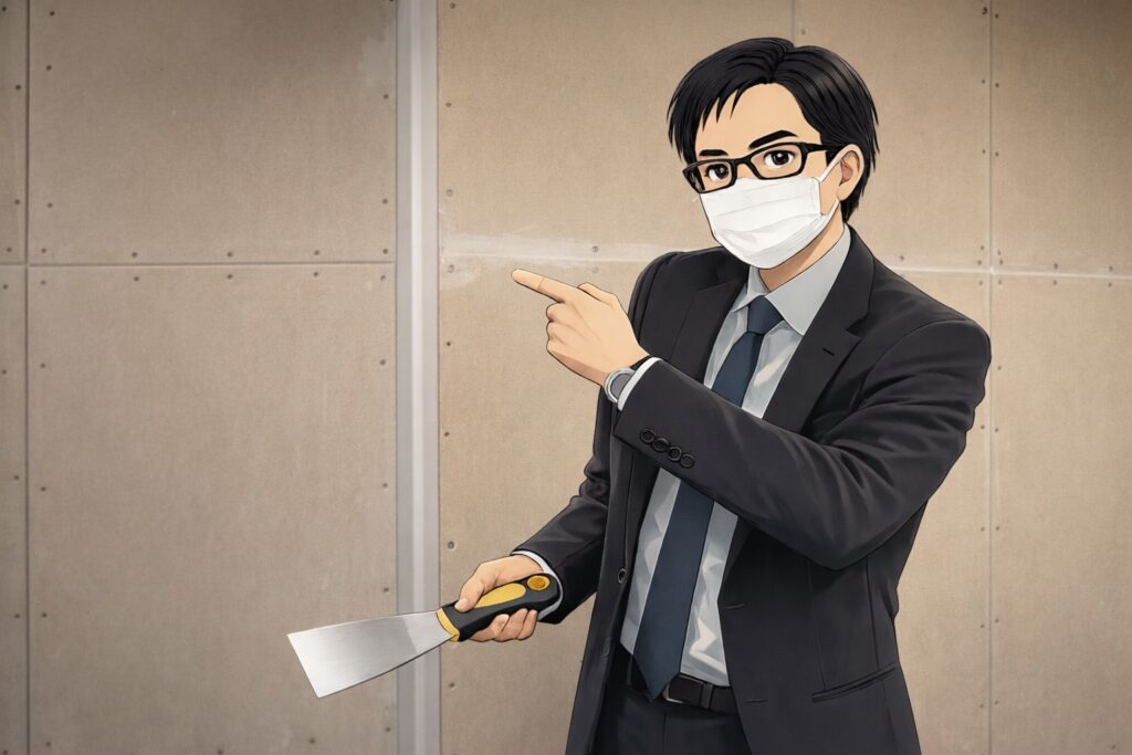 壁の継ぎ目やビス穴、わずかな凹凸をパテで埋めて、