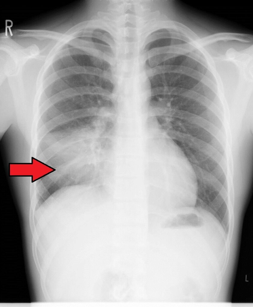 肺炎になるとレントゲン上でも白く影が見えてくることが多いですが、気管支炎では影が見えることはあまりありません。
